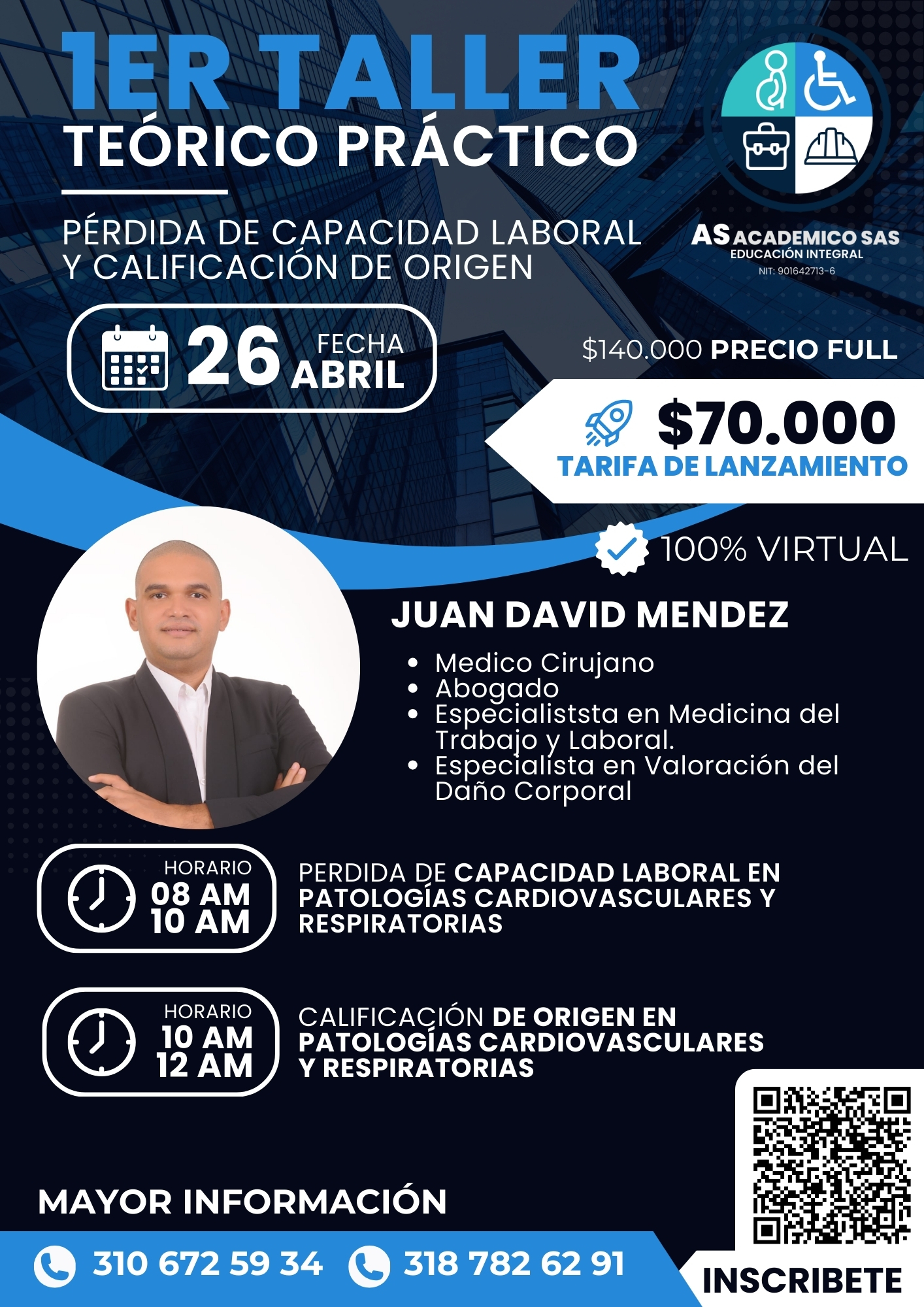 1ER TALLER TEORICO PRACTICO PÉRDIDA DE CAPACIDAD LABORAL Y CALIFICACIÓN DE ORIGEN EN PATOLOGÍAS CARDIOVASCULARES Y RESPIRATORIAS. SOLICITAR INFORMACION