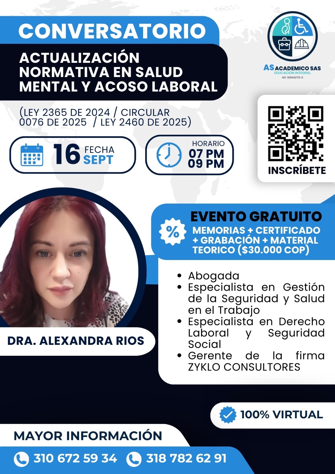 ACTUALIZACIÓN NORMATIVA EN SALUD MENTAL Y ACOSO LABORAL: (Ley 2365 de 2024 – Circular 0076 de 2025 – lEY 2460 DE 2025)