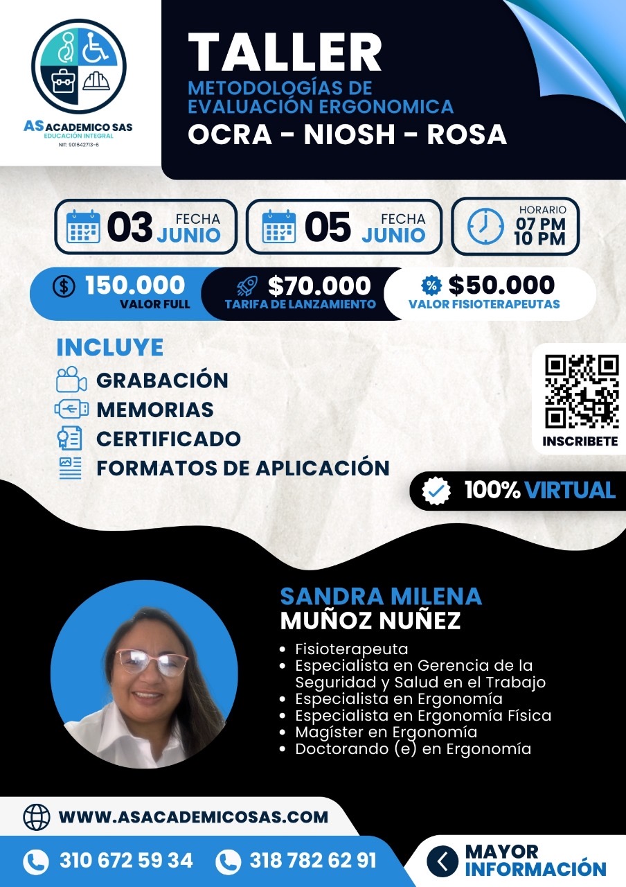 TALLER DE METODOLOGIAS DE EVALUACION ERGONOMICA TALLER DE METODOLOGIAS OCRA – NIOSH – ROSA SOLICITAR INFORMACION